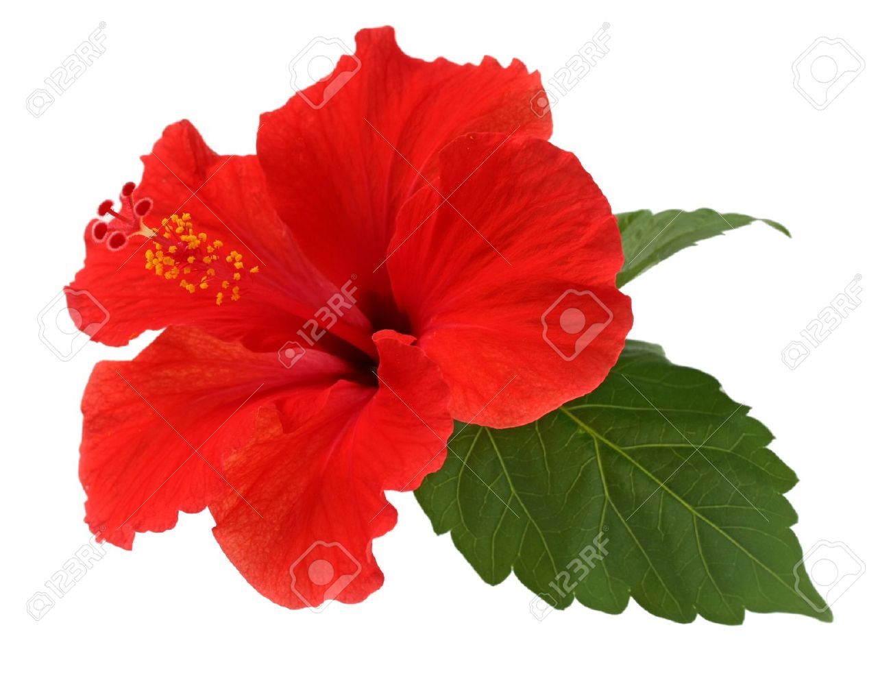 Eine rote hibiskus-blume auf weißem hintergrund